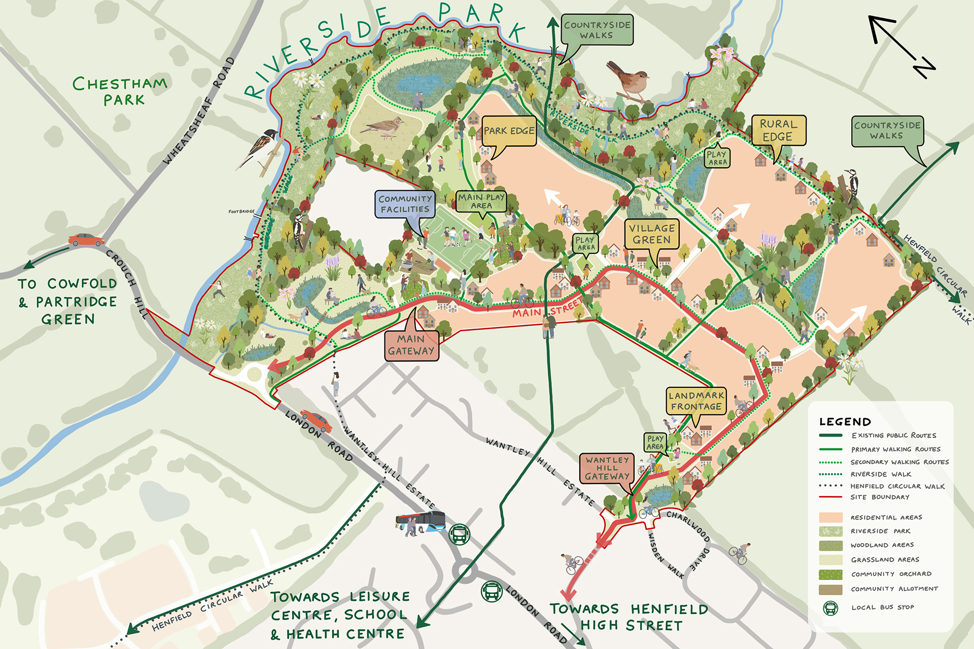 • We will include a series of green spaces and new walking and cycling routes that link through the site and into the wider countryside, making it easier for people to get around safely and more sustainably.